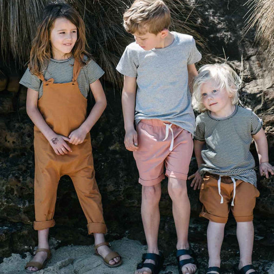 Our overalls collection layers beautifully with our range of tops or are just as nice worn as is. Made with our signature super soft cotton, easy to pull up or pull down, and perfect for running and playing all day long.