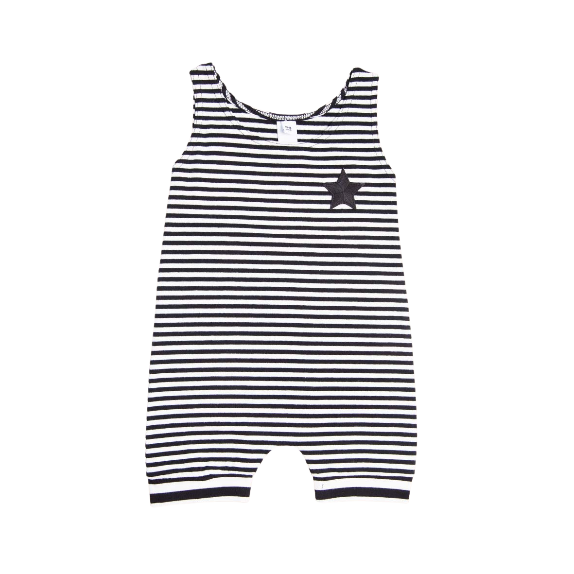 Perfectly unisex with its classic black and white classic stripe, this muscle playsuit romper is going to quickly become a loved item in your home.