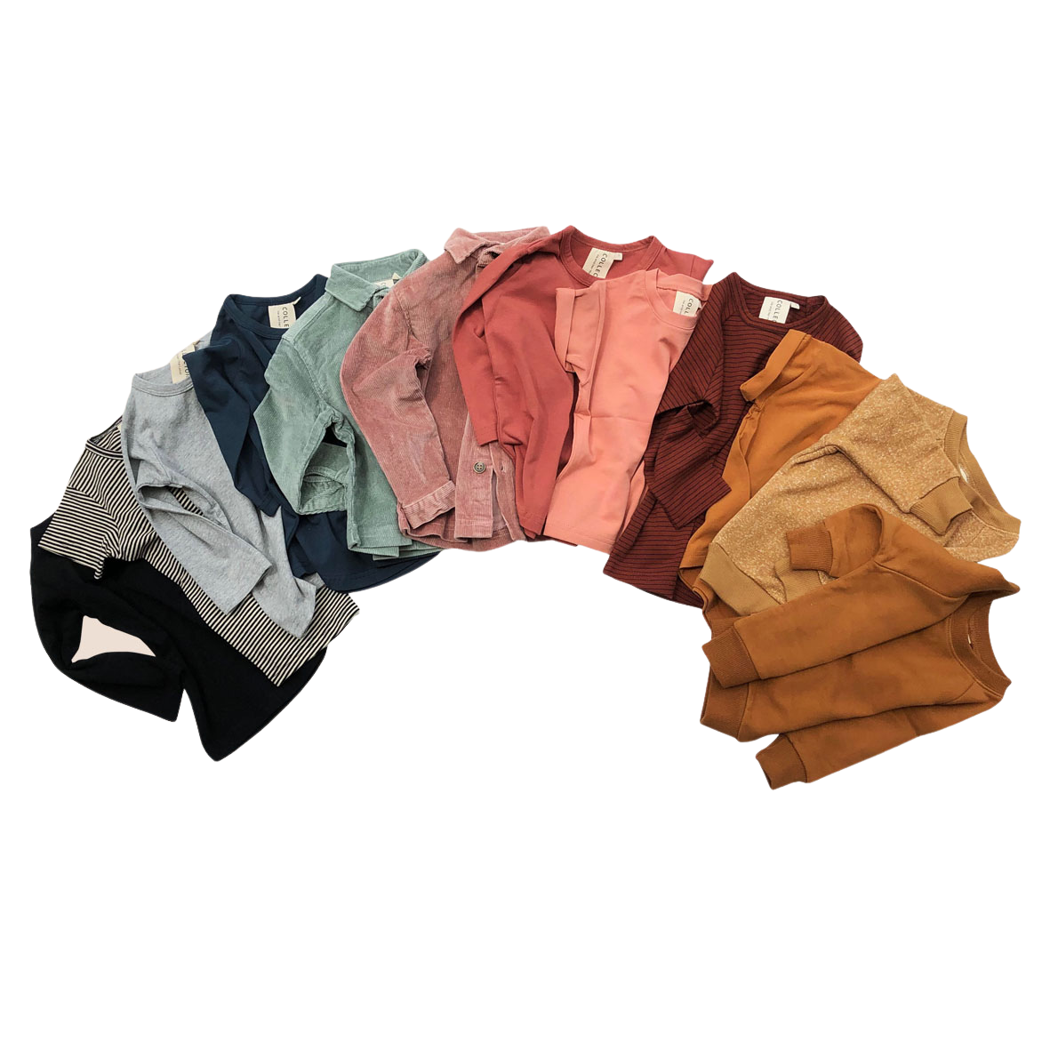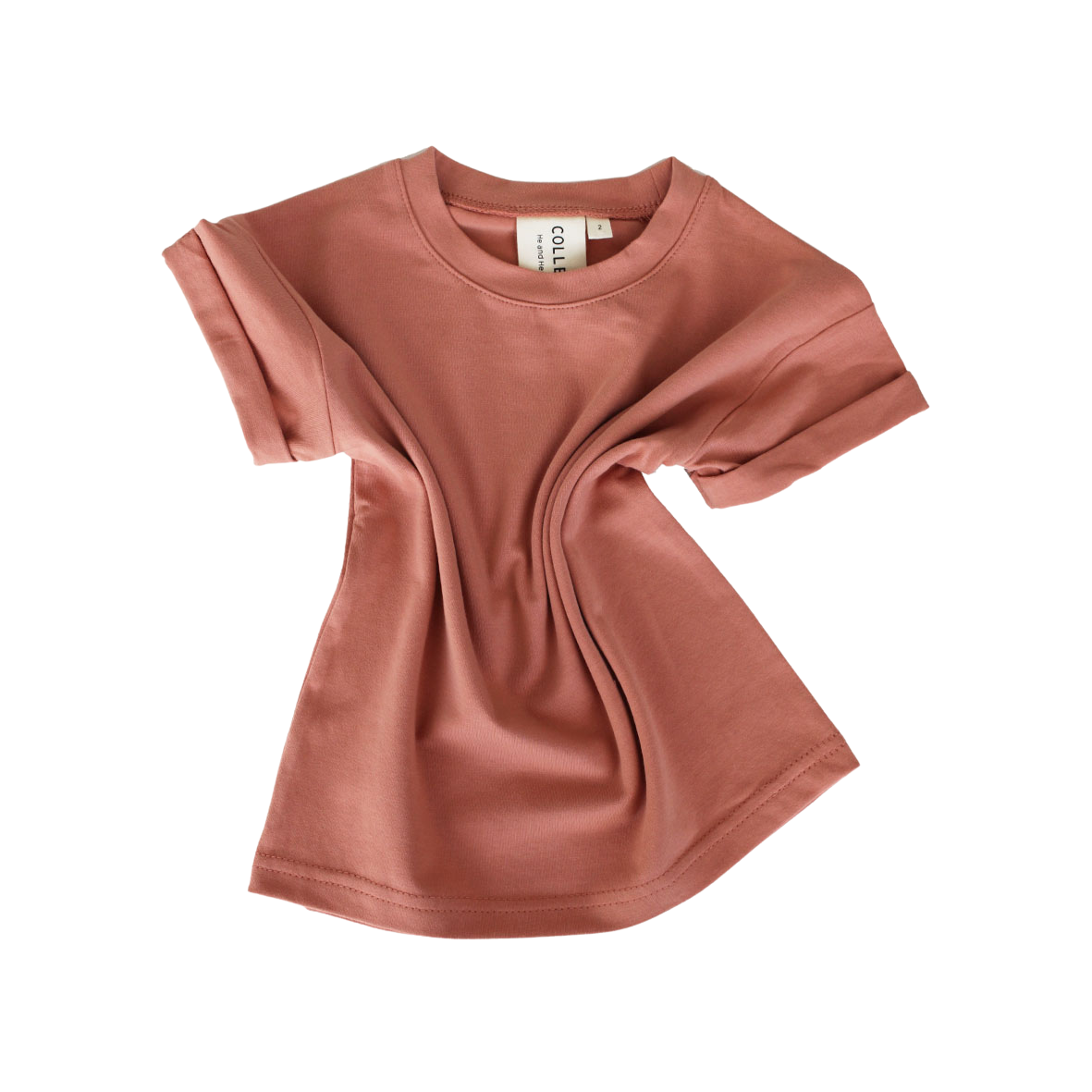 Made from our signature super soft cotton with just the right amount of spandex (5%) to keep it in shape and looking new wash and wear after wash and wear. Sitting a little shorter than our classic tee, with a dropped shoulder seam, rolled sleeve cuffs, and the coolest boxy shape (good boxy, not bad boxy). This style is perfect for girls and boys, babies, toddlers and bigger kids alike.