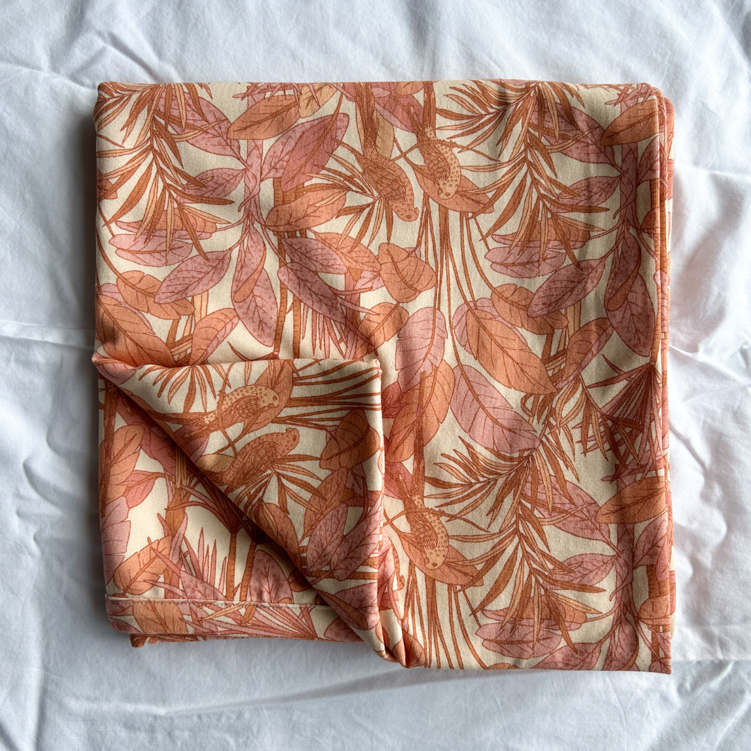 Featuring generous 100cm x 100cm dimensions and our new signature super soft and breathable 200gsm organic cotton jersey blend fabric, our organic snuggle blanket is the perfect size and has just enough stretch for easy swaddling and wrapping of your precious newborn bub.