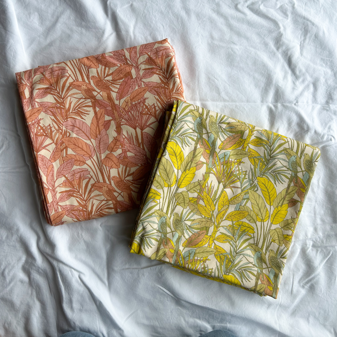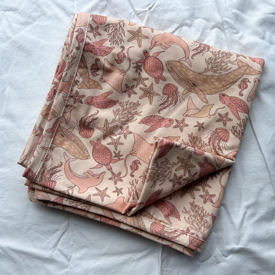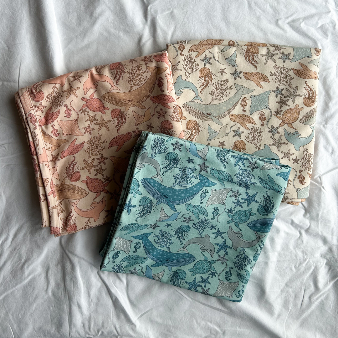 Available in five of our stunning new prints, including sea creatures blue, sea creatures shell, sea creatures blush, rainforest sherbet, and rainforest yellow. Take your pick or bring home a couple to always have one on hand.