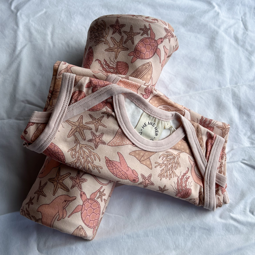 Featuring our new signature organic cotton jersey blend (95% cotton 5% spandex) to give you the fit, durability, softness, and comfort we know you love, with the peace of mind that comes with knowing your children's delicate skin is covered in our GOTS Certified Organic and OEKO-TEX® certified healthy, safe, breathable, and kind cotton jersey blend. Sourced and milled just for you, our valued He and Her the Label community.