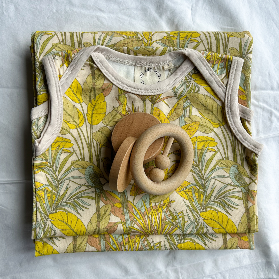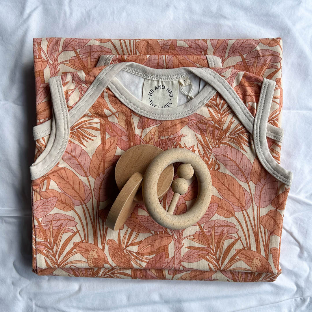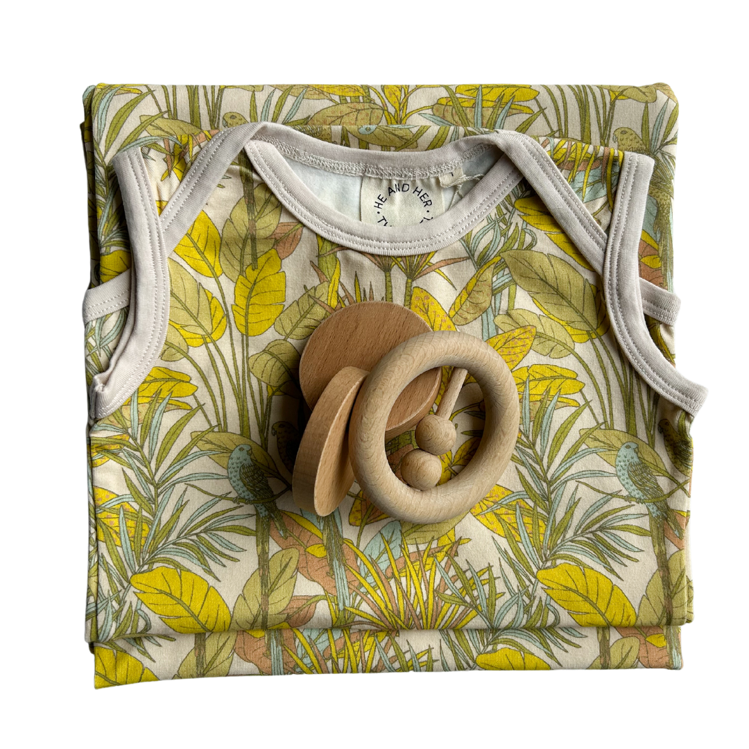 We're offering a bundle of our organic singlet bodysuit in a size of your choice with one of our matching organic snuggle blanket. This will last only as long as our limited stock does! Snap up the perfect set as a gift or for your own little one's nursery, and save as you do it!