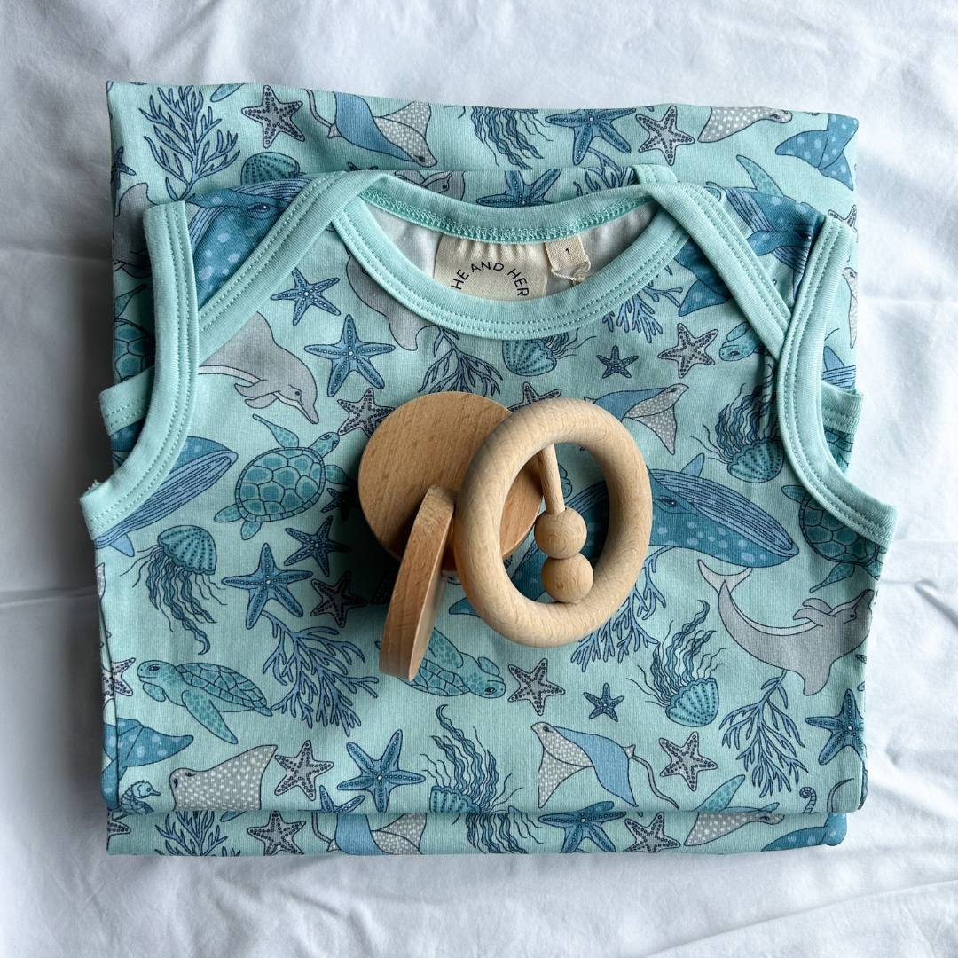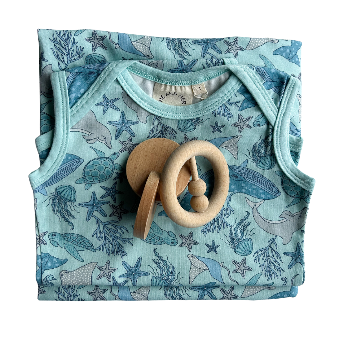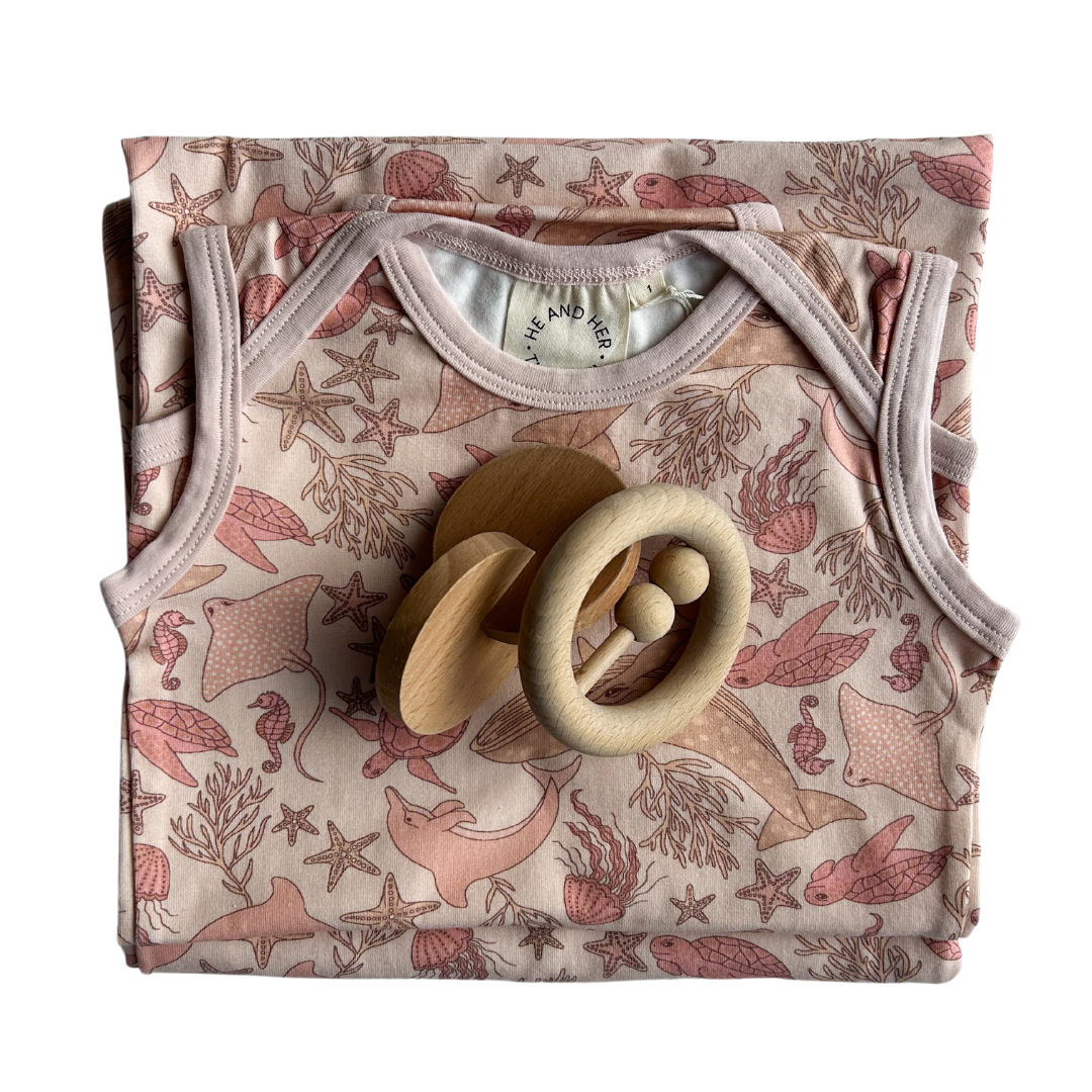 We're offering a bundle of our organic singlet bodysuit in a size of your choice with one of our matching organic snuggle blanket. This will last only as long as our limited stock does! Snap up the perfect set as a gift or for your own little one's nursery, and save as you do it!