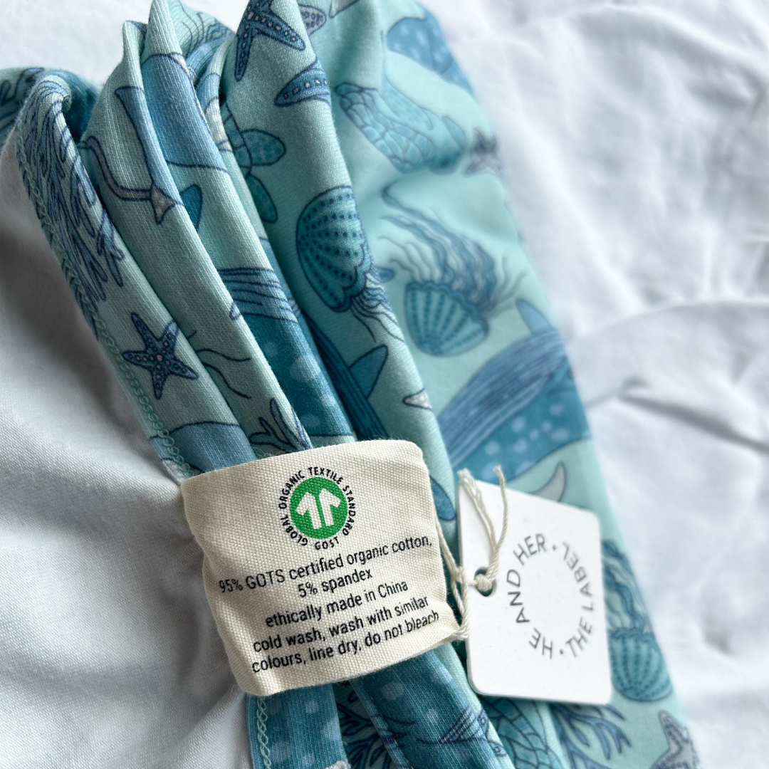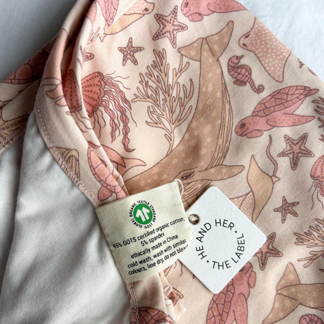 Both feature our new signature organic cotton jersey blend (95% cotton 5% spandex) to give you the fit, durability, softness, and comfort we know you love, with the peace of mind that comes with knowing your children's delicate skin is covered in our GOTS Certified Organic and OEKO-TEX® certified healthy, safe, breathable, and kind cotton jersey blend. Sourced and milled just for you, our valued He and Her the Label community.