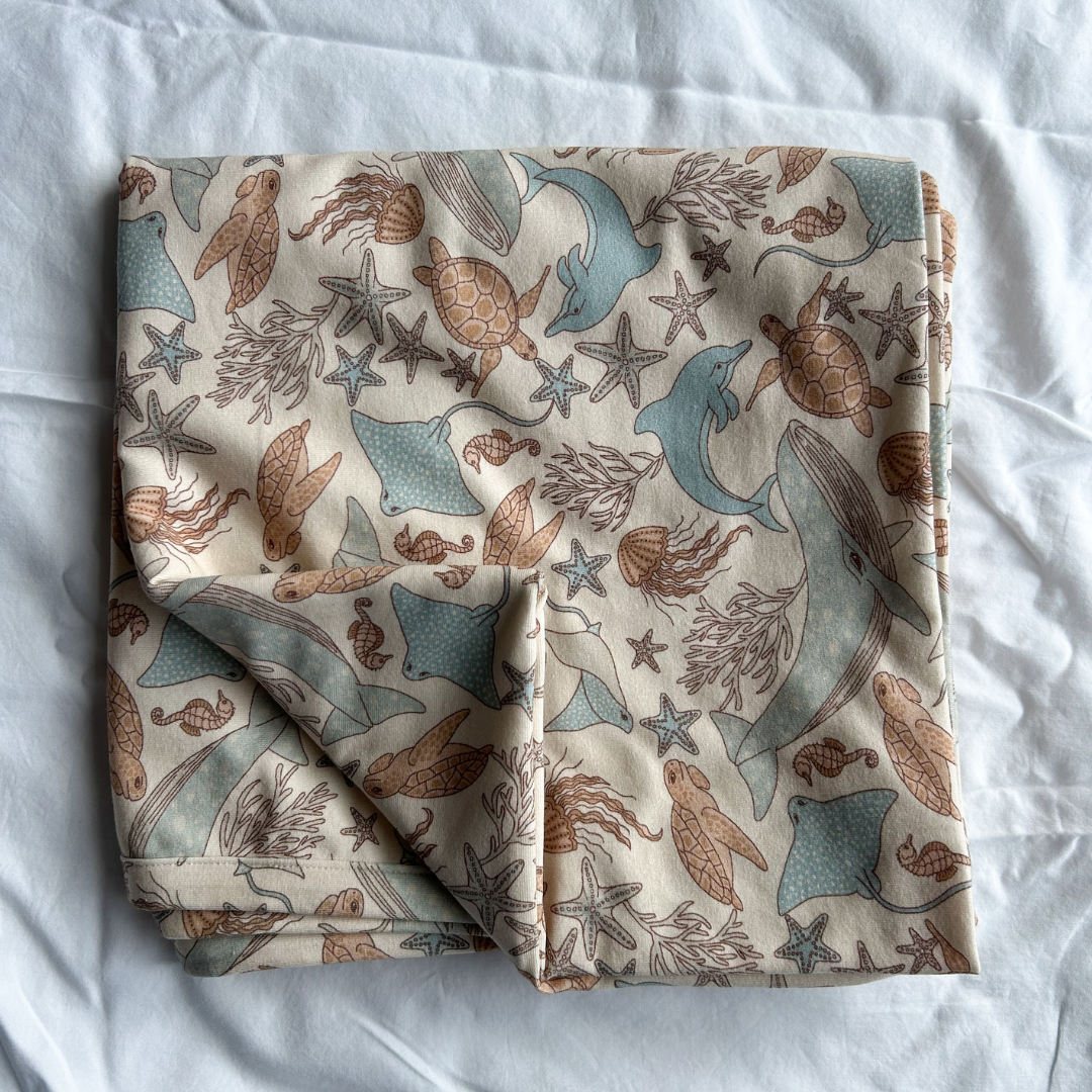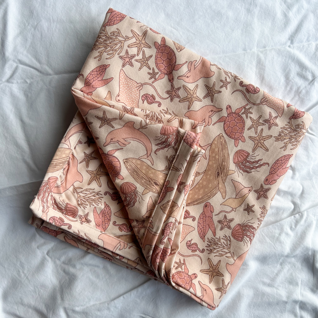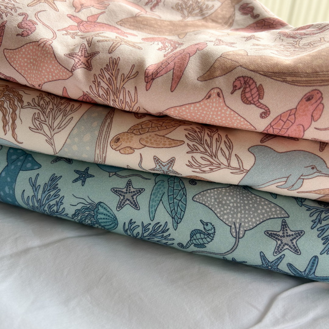 Available in five of our stunning new prints, including sea creatures blue, sea creatures shell, sea creatures blush, rainforest sherbet, and rainforest yellow.